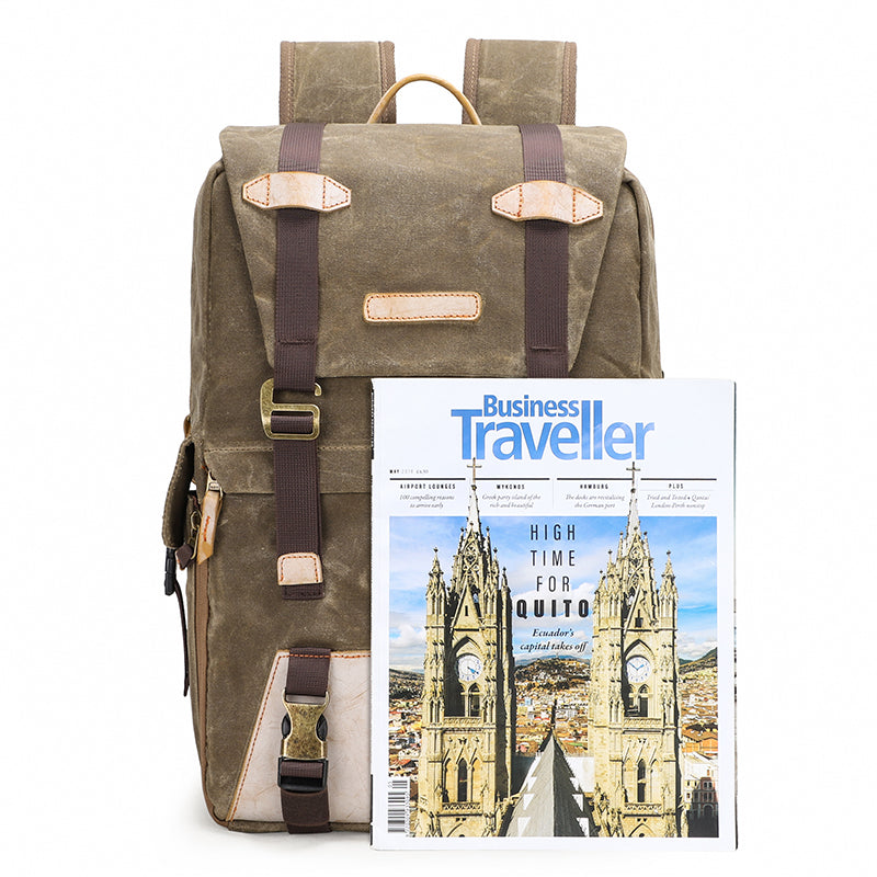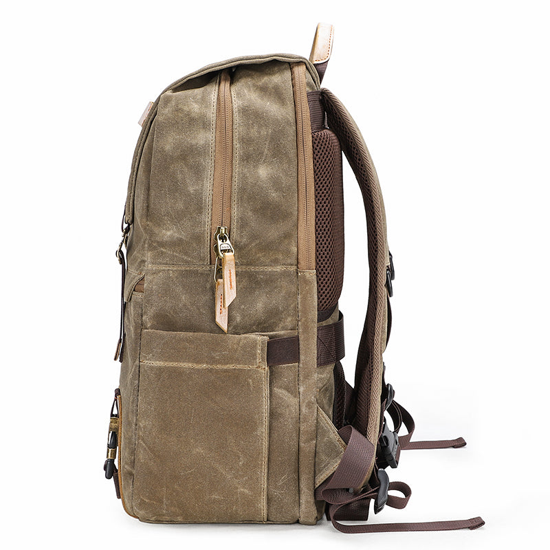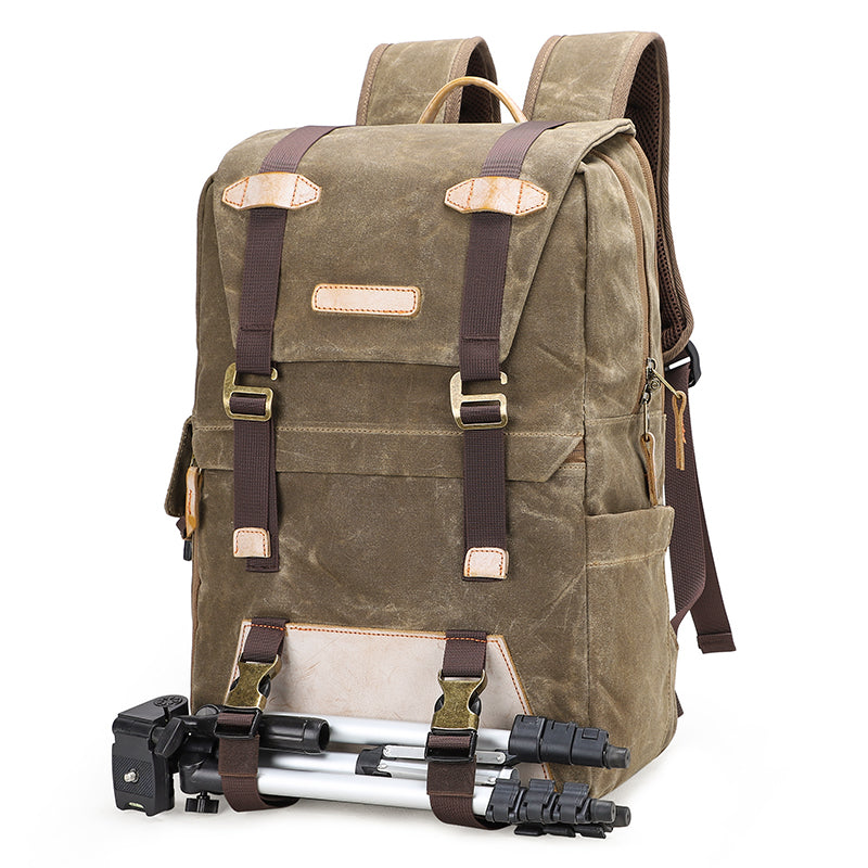 Design: Canvas Leather Mens 18" Waterproof Camera Backpack Army Green Travel Backpack Khaki College Backpack for Men