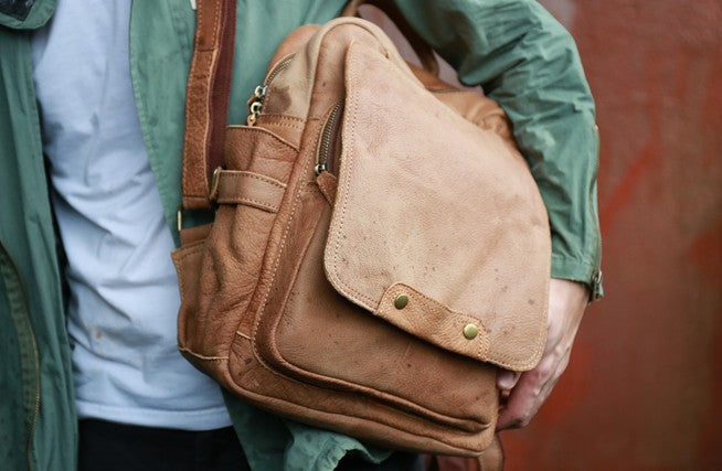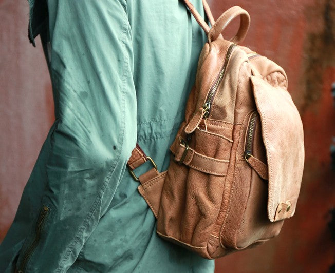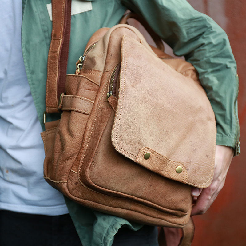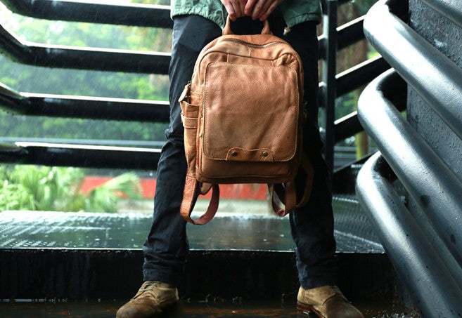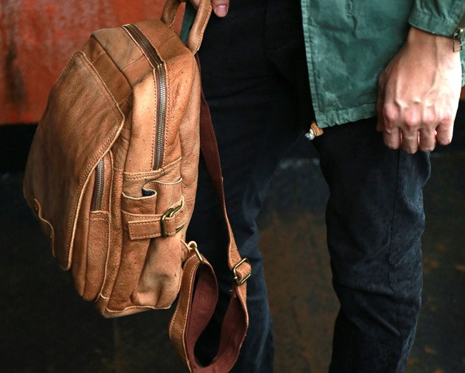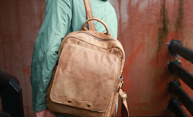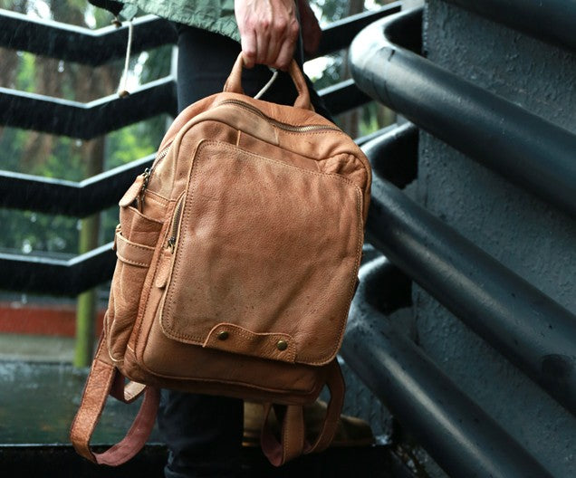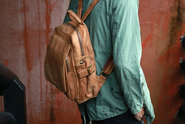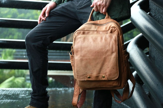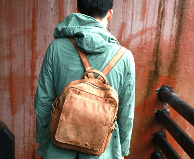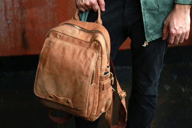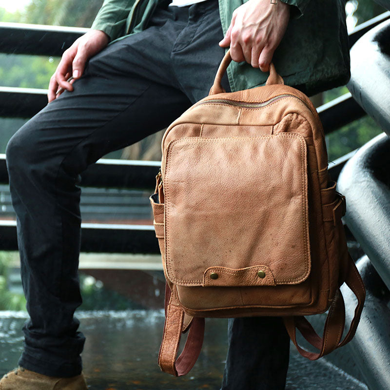 Style: Leather Camel Mens Backpack Cool Travel Backpacks Laptop Backpack for men