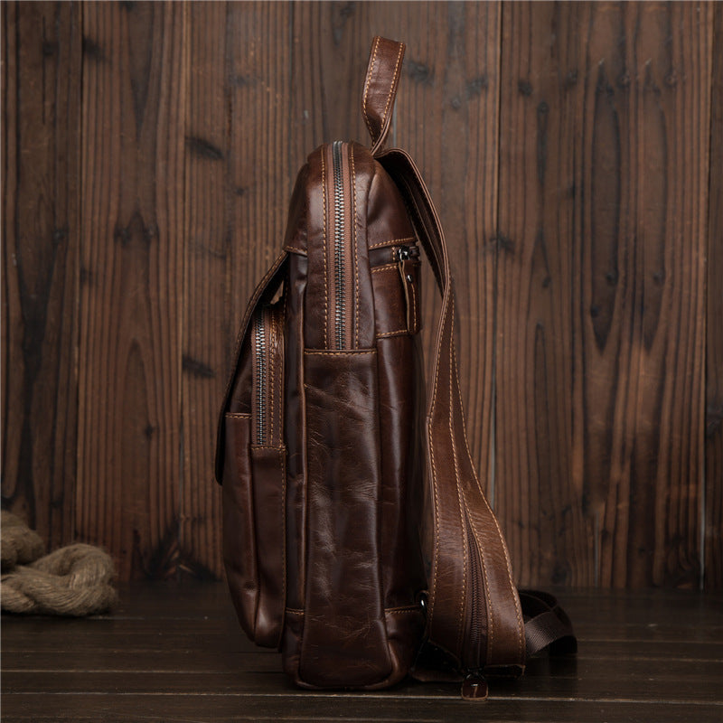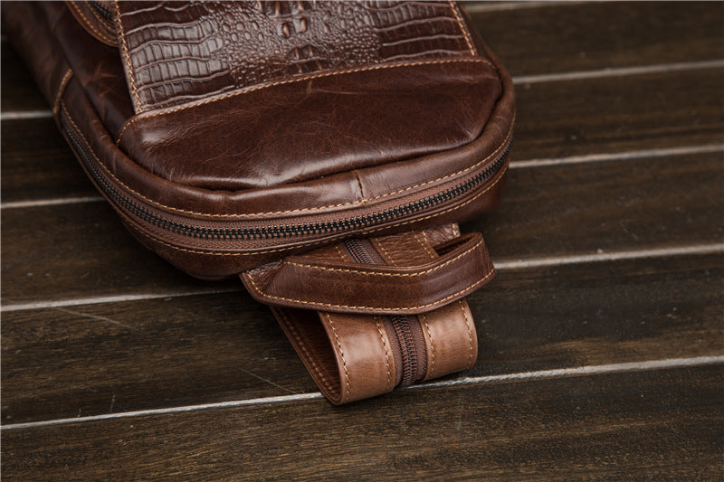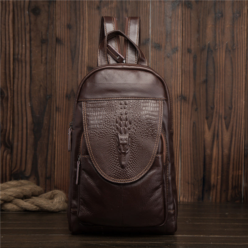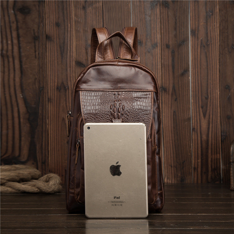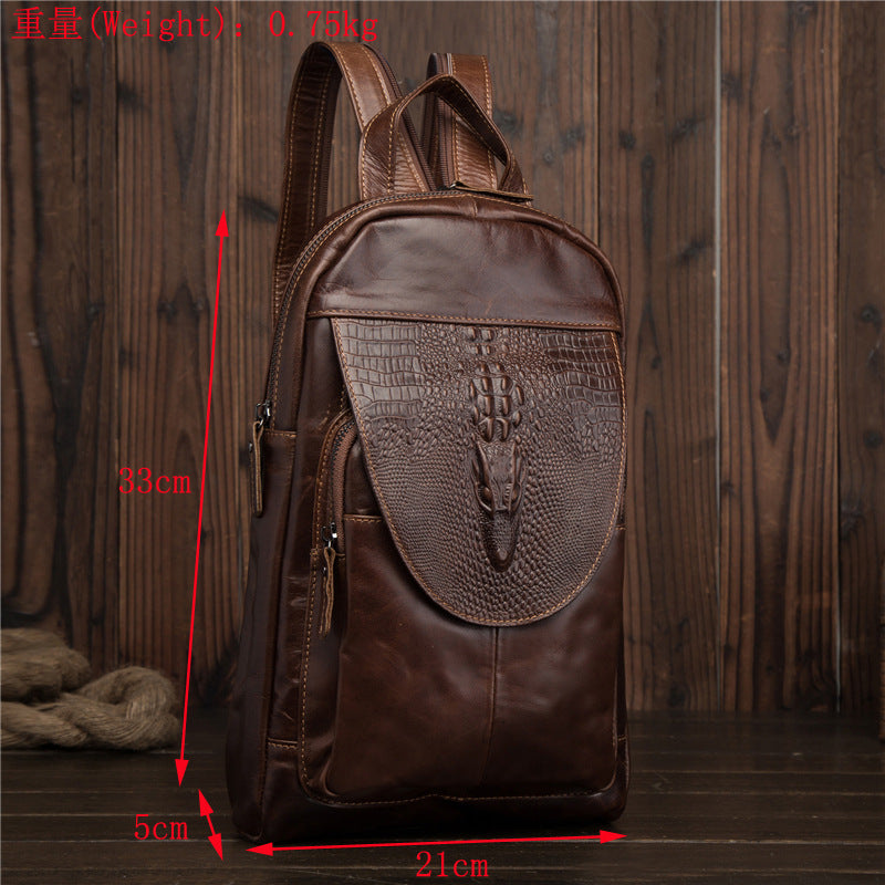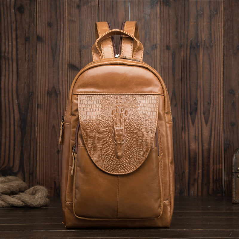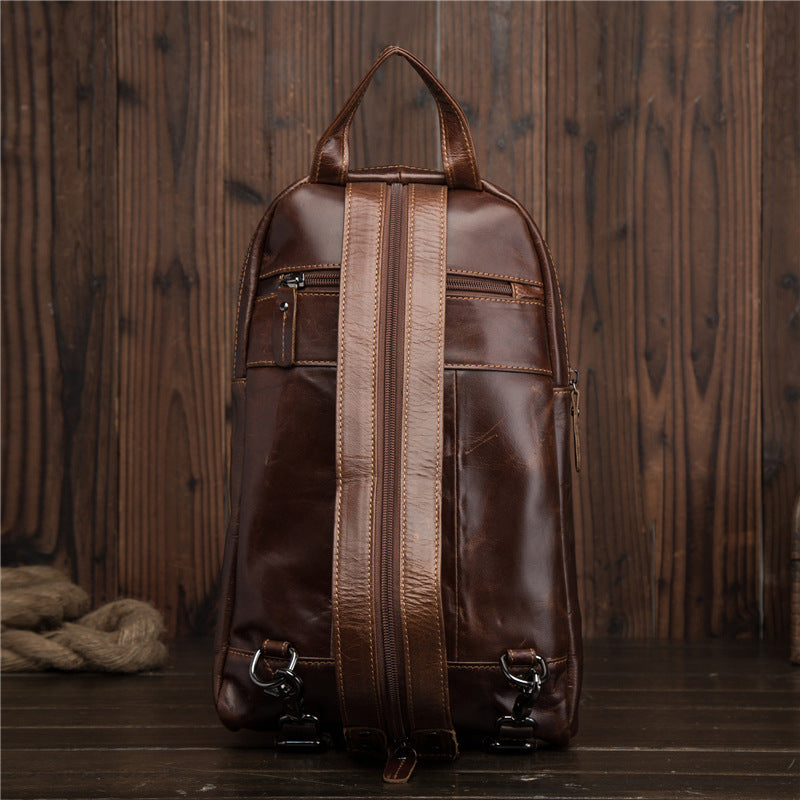 Style: Cool Brown Leather Men's Sling Bag One Shoulder Backpack Black Sling Crossbody Pack For Men