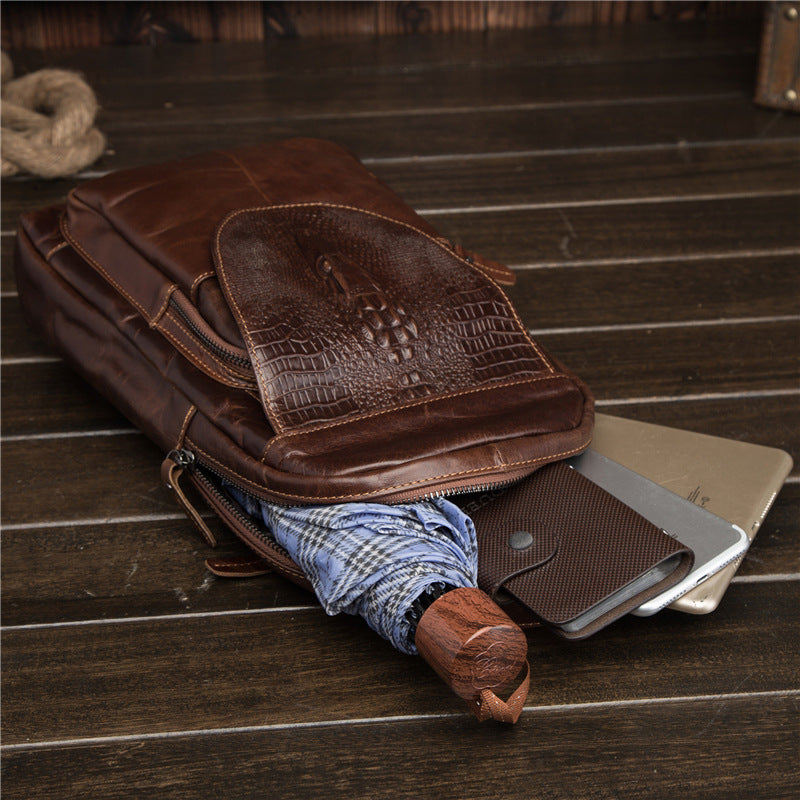 Design: Cool Brown Leather Men's Sling Bag One Shoulder Backpack Black Sling Crossbody Pack For Men