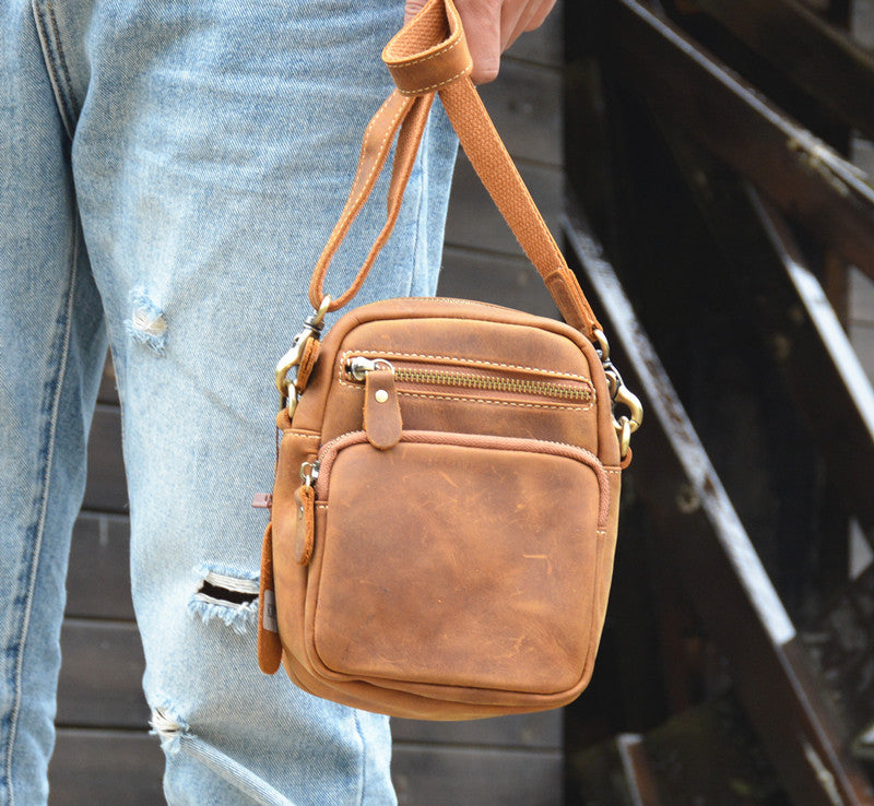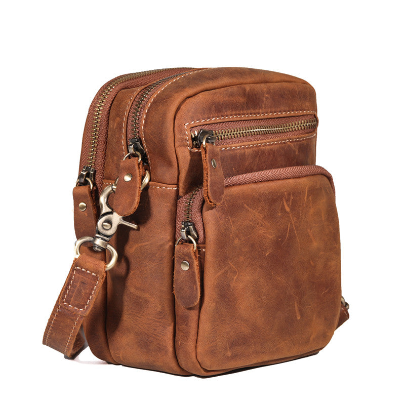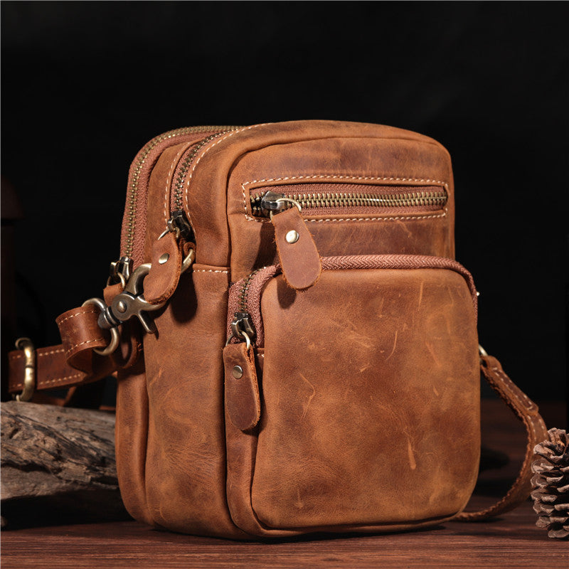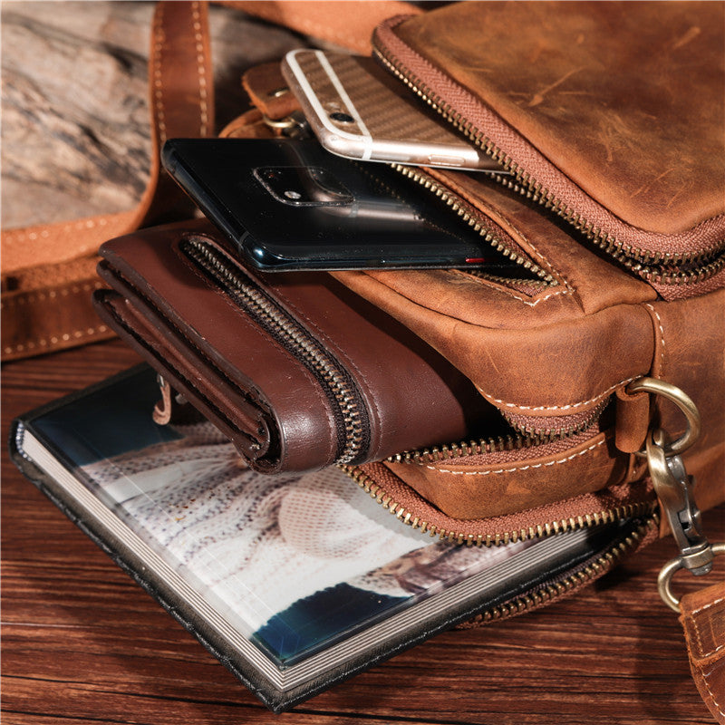 Design: Vintage Brown Leather Men's Belt Pouches Cell Phone Holsters Mini Side Bag For Men