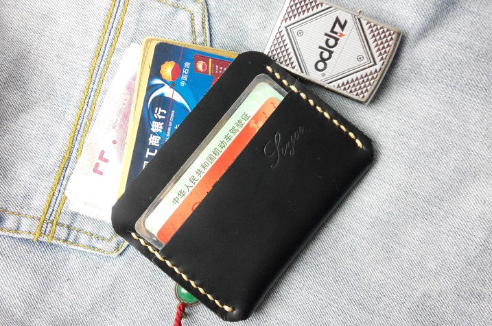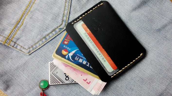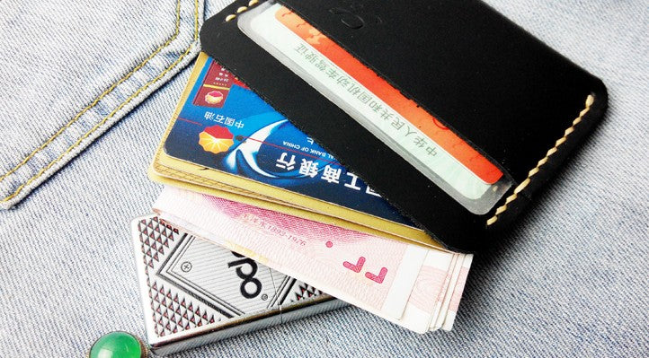 Style: Handmade Leather Mens Slim Front Pocket Wallets Leather Cards Wallet for Men
