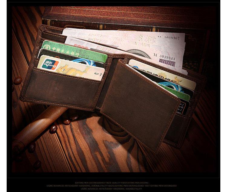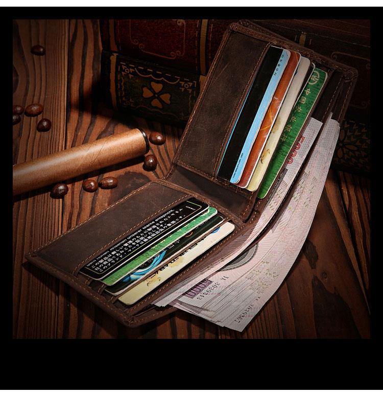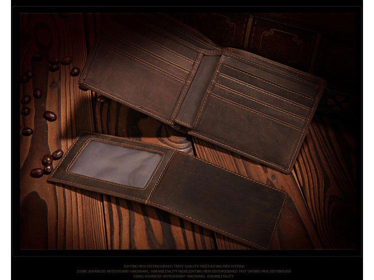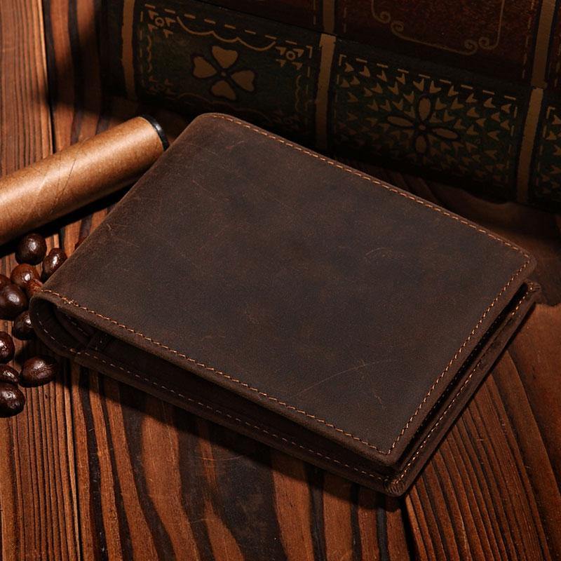 Design: Handmade Brown Leather Mens Bifold Billfold Wallets With Coin Pocket Small Wallet for Men