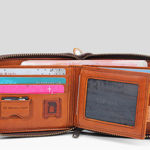 Design: Handmade Mens Cool billfold Leather Wallet Men Small Wallets Bifold for Men