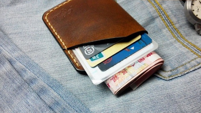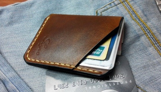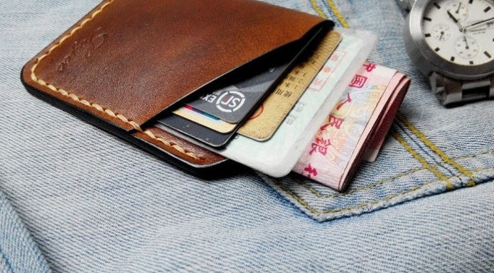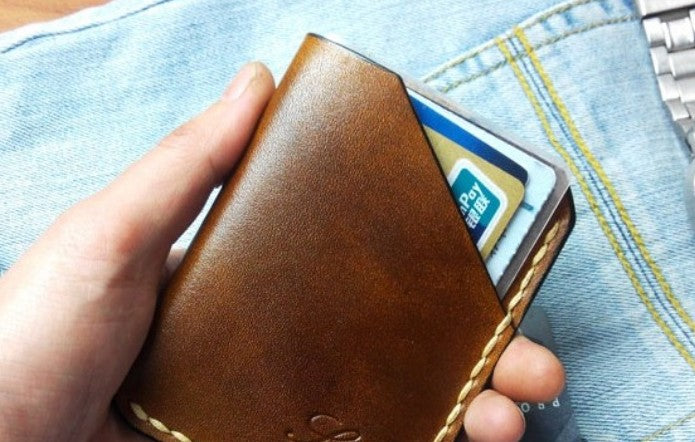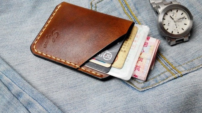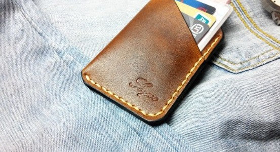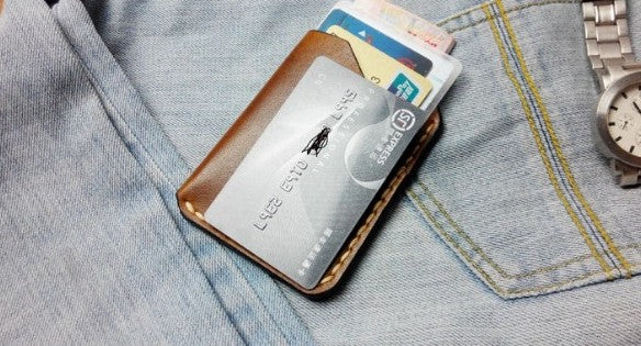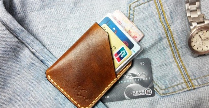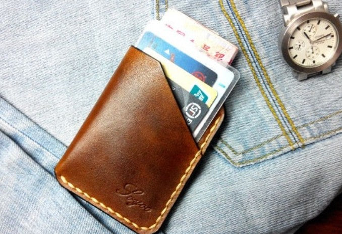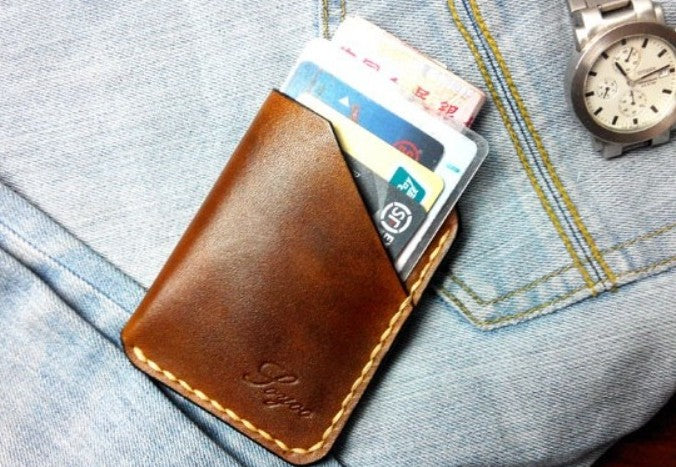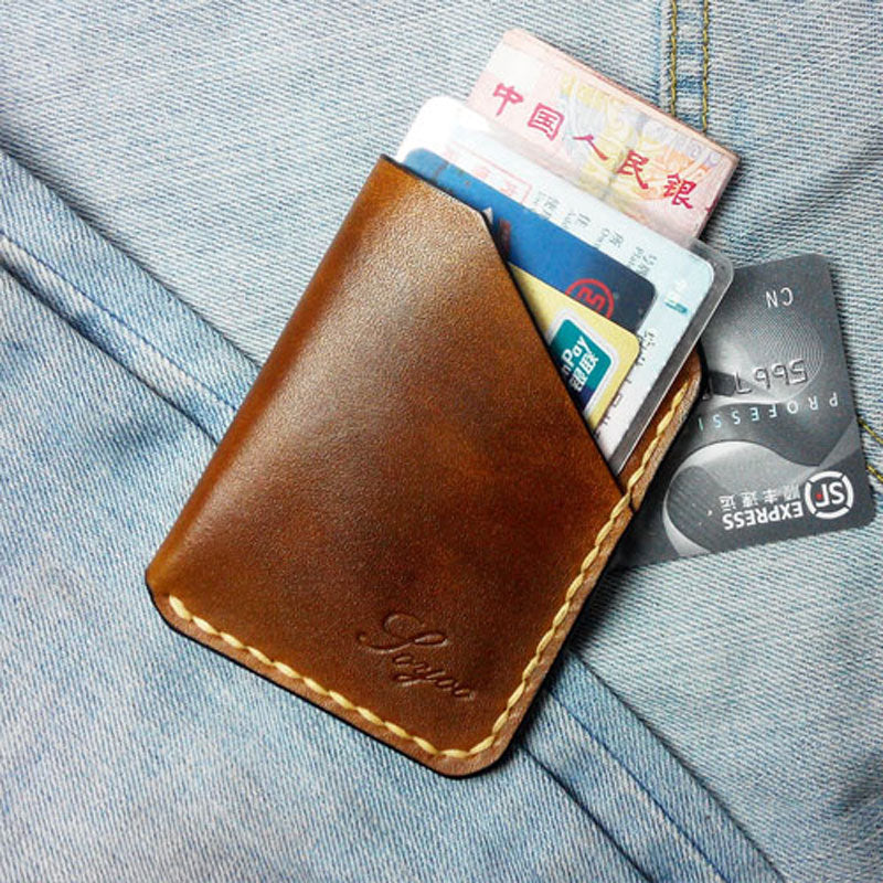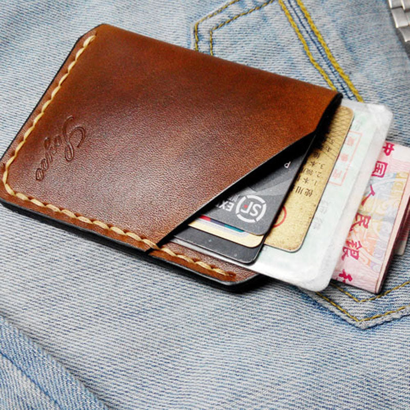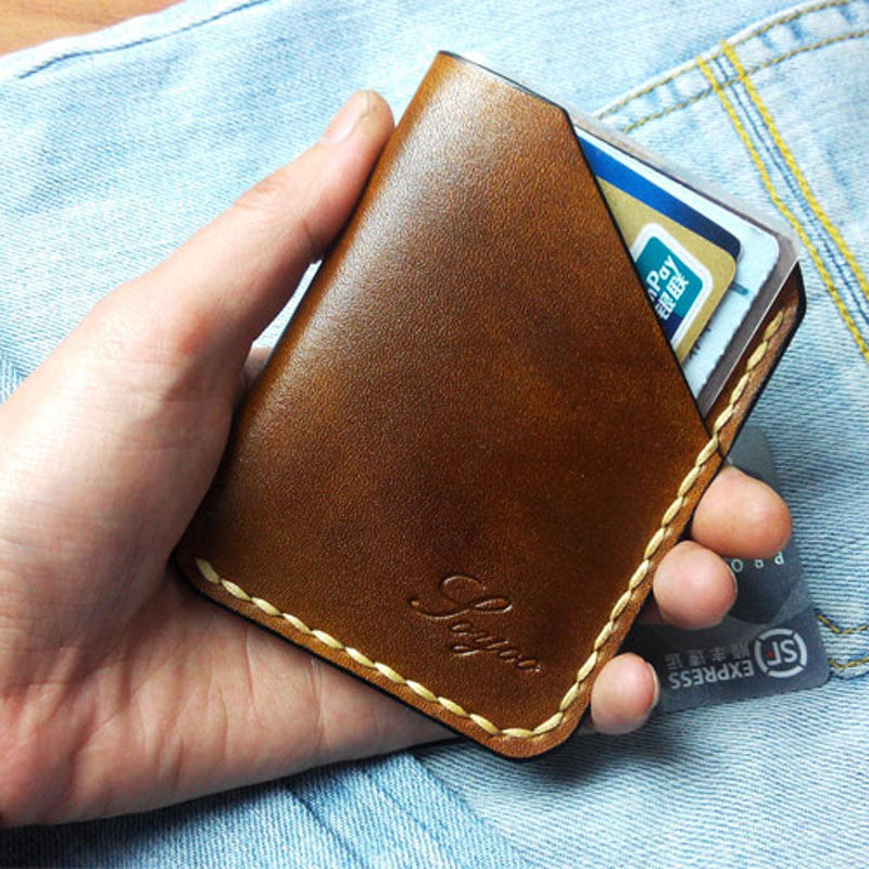 Design: Red Brown Leather Mens Slim Front Pocket Wallets Leather Card Wallet for Men