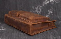 Style: Brown Leather Mens 14 inches Laptop Briefcase Brown Work Handbag Business Bag For Men
