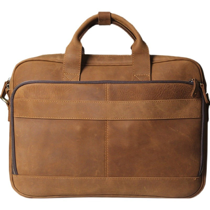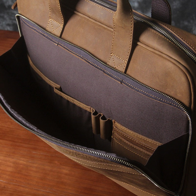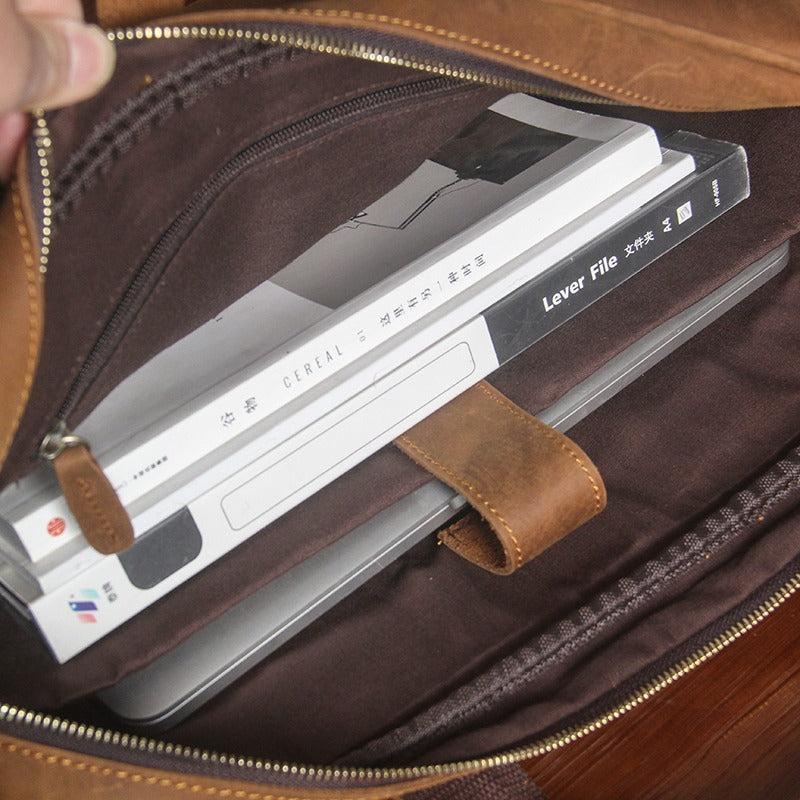Design:  Brown Leather Mens Briefcase Brown Work Handbag 14 inches Laptop Business Bags For Men