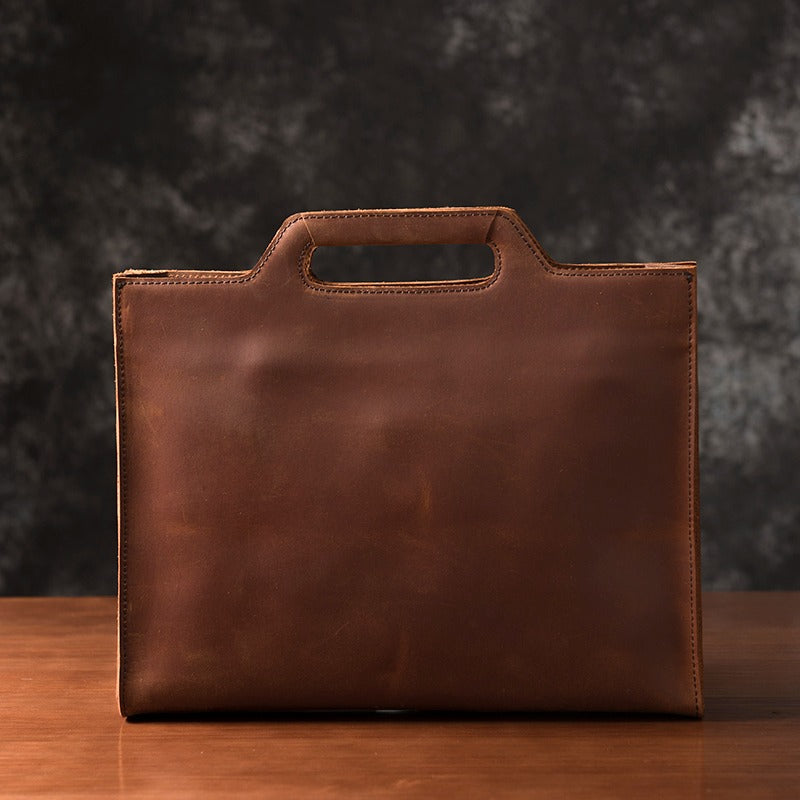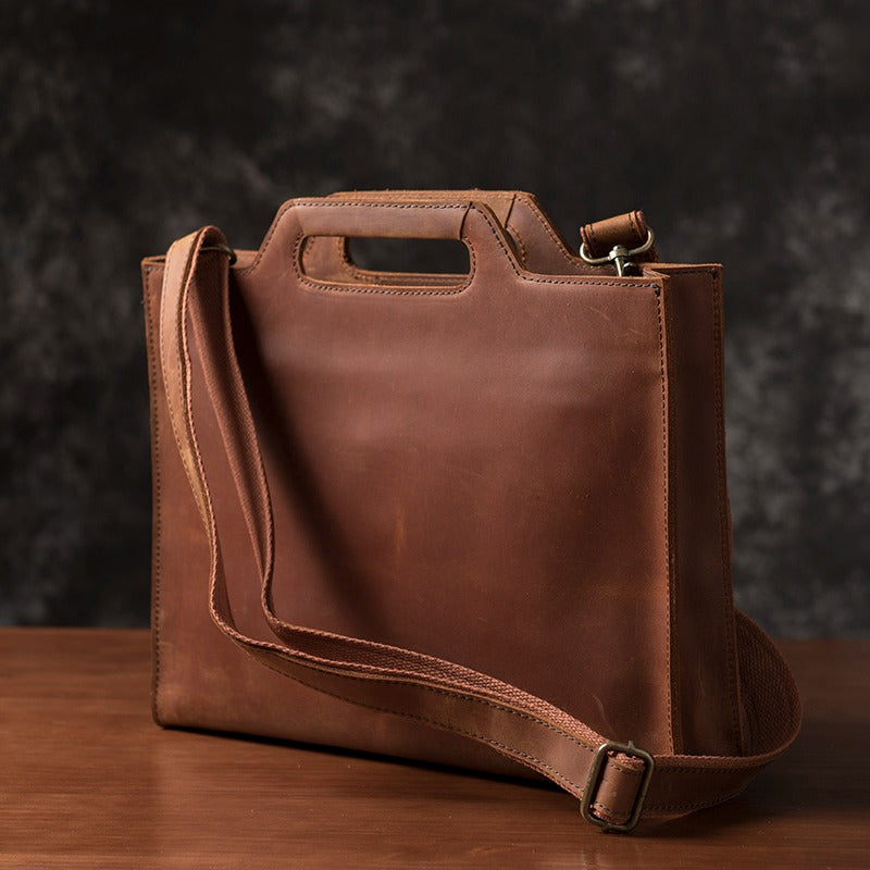 Style:  Coffee Leather Mens Briefcases Work Handbag 13 inches Laptop Business Bag For Men