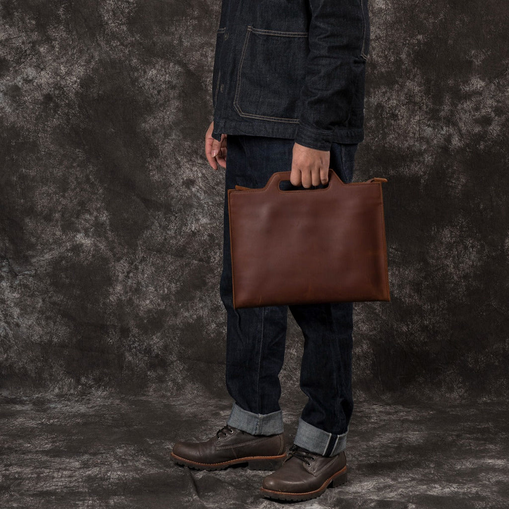 Design:  Coffee Leather Mens Briefcases Work Handbag 13 inches Laptop Business Bag For Men