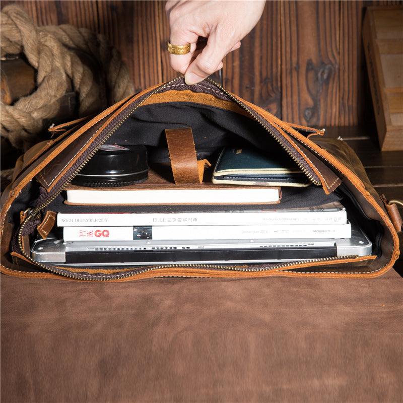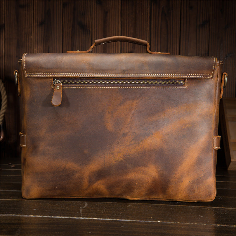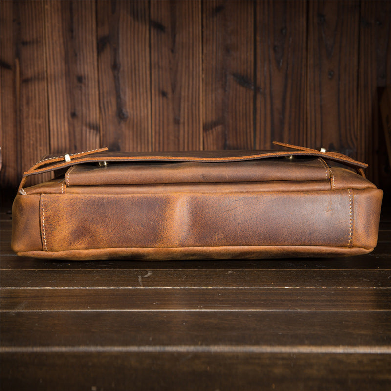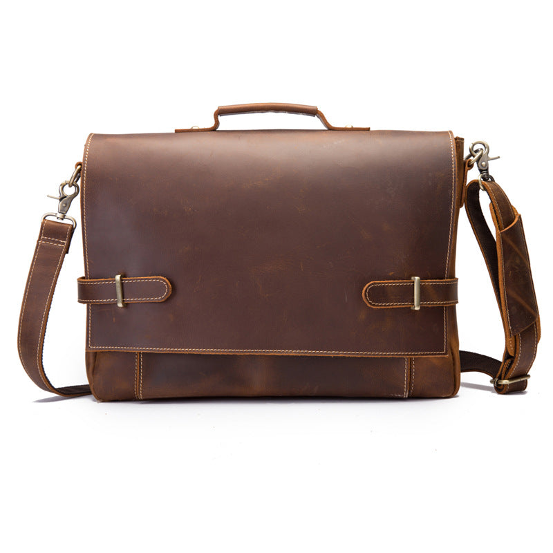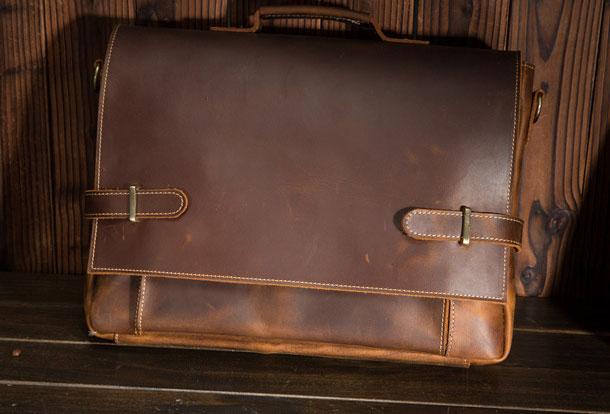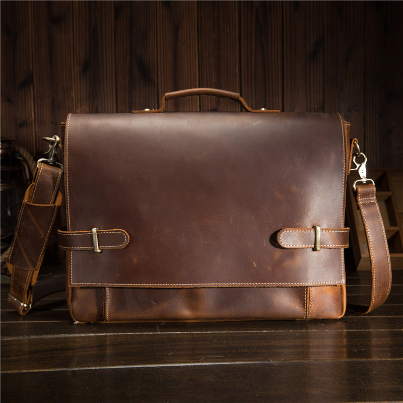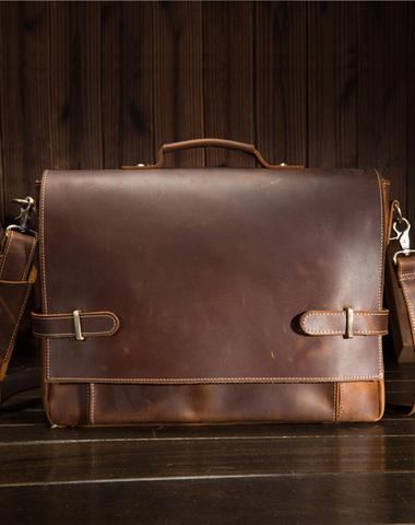 Style: Cool Leather Mens Briefcases Business Briefcase Vintage Shoulder Bag HandBag for men