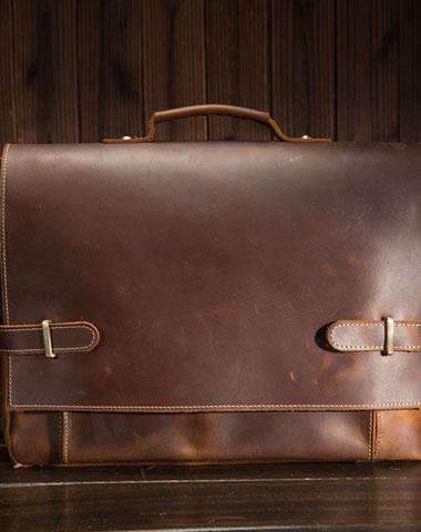 Design: Cool Leather Mens Briefcases Business Briefcase Vintage Shoulder Bag HandBag for men