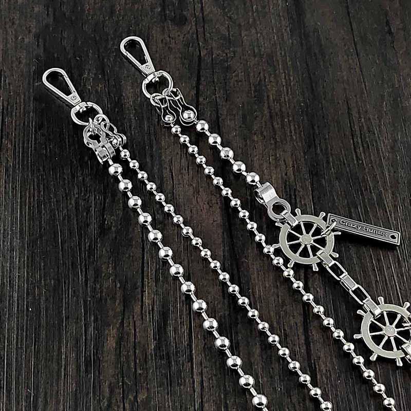 Design: 31'' Biker Wallet Chain Silver Wallet Chain Beaded Mens Long Pants Chain Anchor Jeans Chain Jean