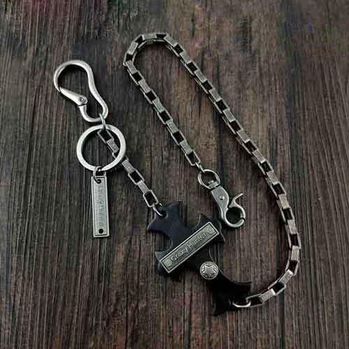 Design: 24'' HEAVY METAL CROSS BIKER SILVER WALLET CHAIN LONG PANTS CHAIN SILVER Jeans Chain Jean Chain FOR MEN