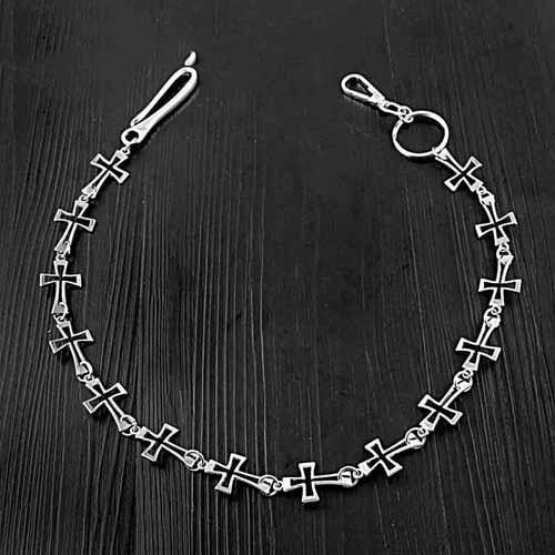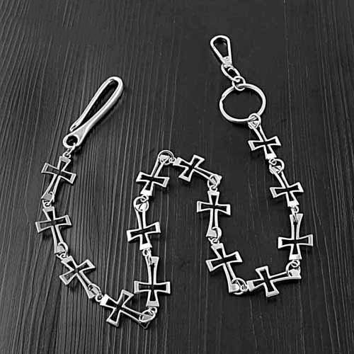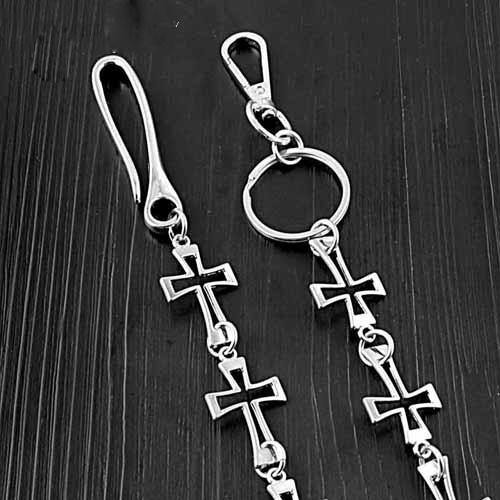 Design: 28'' Silver Biker Wallet Chain Cross Loops Long Pants Chain Silver Jeans Chain For Men