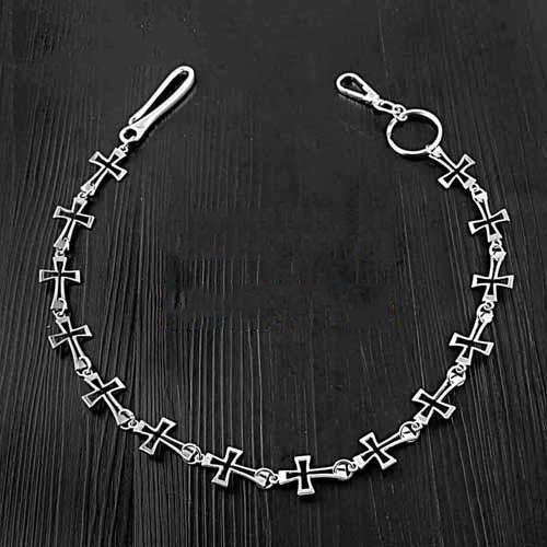 Style: 28'' Silver Biker Wallet Chain Cross Loops Long Pants Chain Silver Jeans Chain For Men
