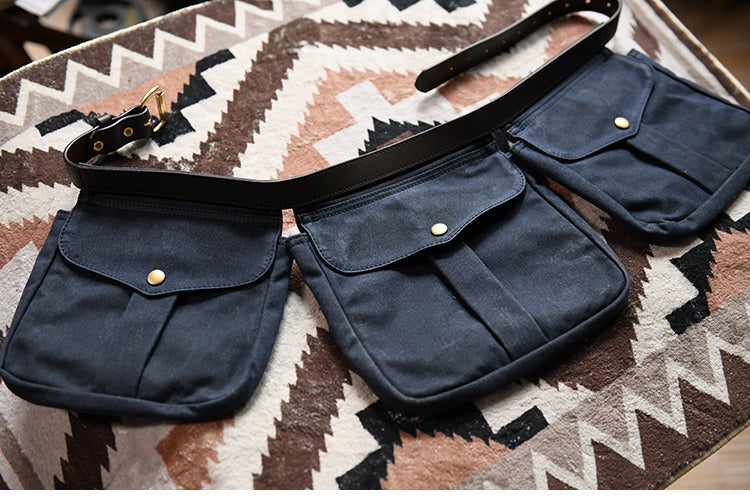 Featuring a sleek leather belt measuring 110cm, these pouches offer both functionality and aesthetic appeal. Each belt comes adorned with three spacious canvas pouches, providing ample storage for a variety of tools and essentials.