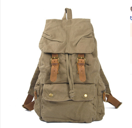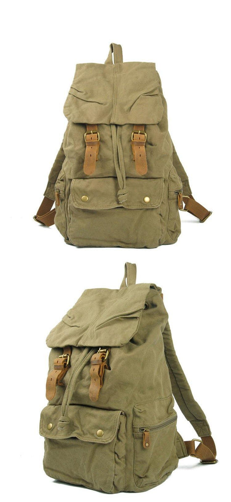 Design: Army Green Canvas School Laptop Backpack Travel Backpack Canvas Mens Hiking Backpack For Men