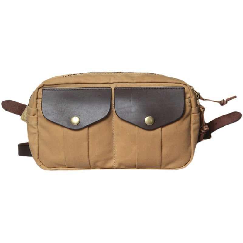 Style: Army Green Leather&Canvas Men Fanny Pack Waist Bag Canvas Hip Pack Bum Pack For Men