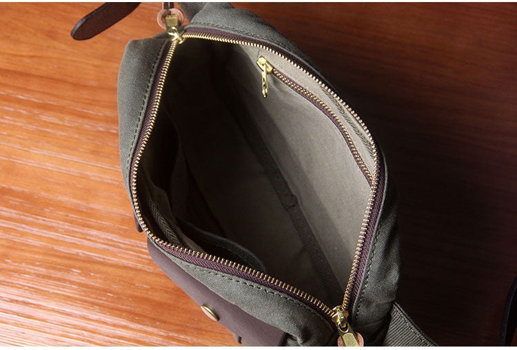 Army Green Leather&Canvas Men Fanny Pack Waist Bags Canvas Hip Pack Bum Pack For Men