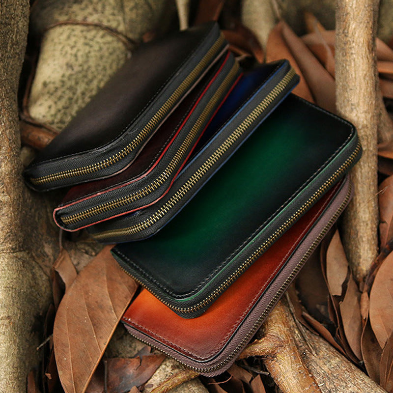Design: Around Zip Leather Long Wallet Mens Minimalist Zipper Clutch Wallet for Men