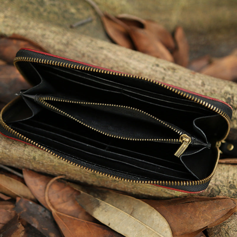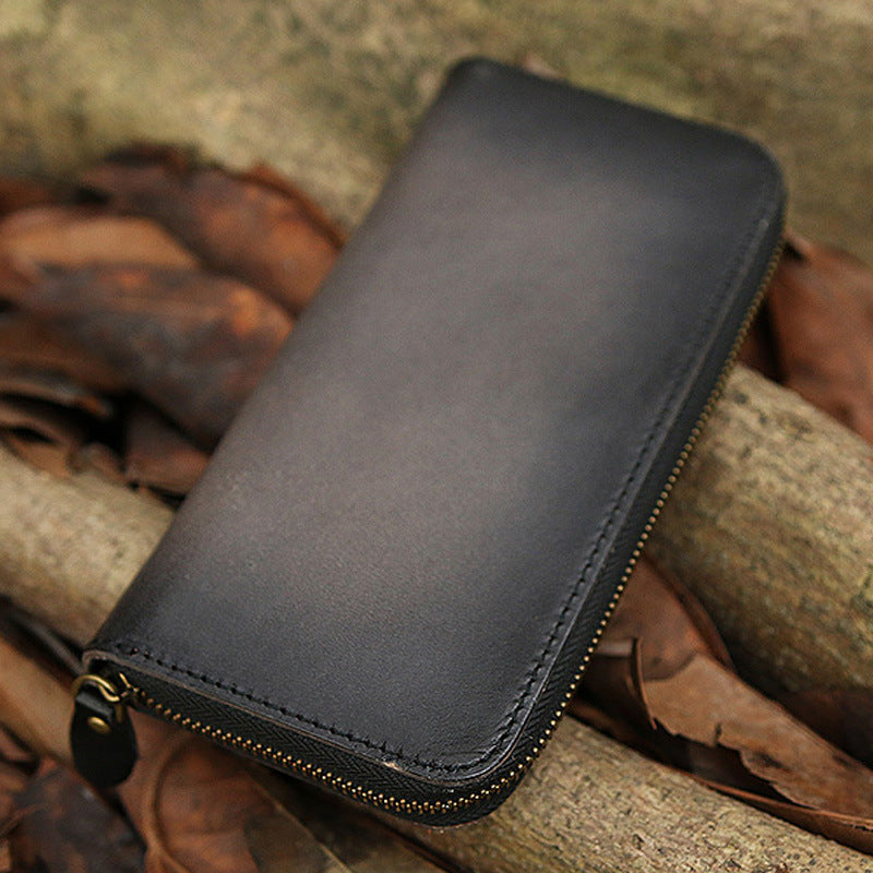Around Zip Leather Long Wallet Mens Minimalist Zipper Clutch Wallet for Men