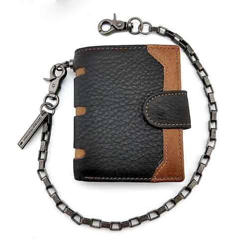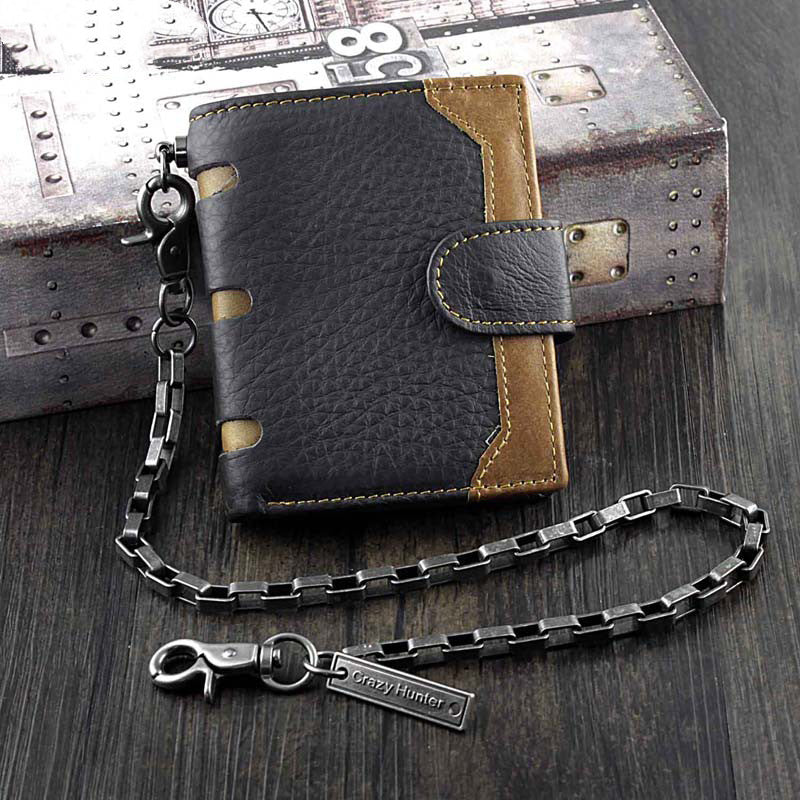 Style: BADASS BLACK BROWN LEATHER MENS TRIFOLD SMALL BIKER WALLET CHAIN WALLET WALLET WITH CHAIN FOR MEN