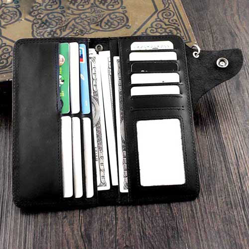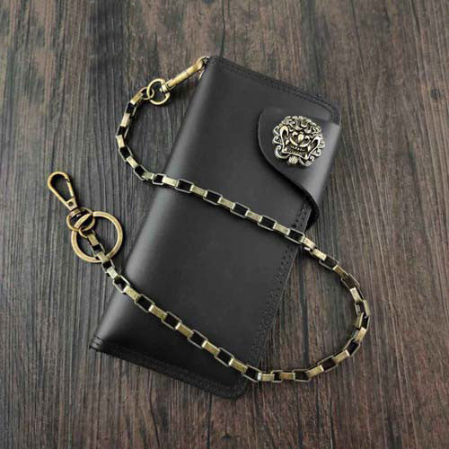 Design: Badass Black Leather Men's Long Biker Chain Wallet Black Long Wallet with Chain For Men