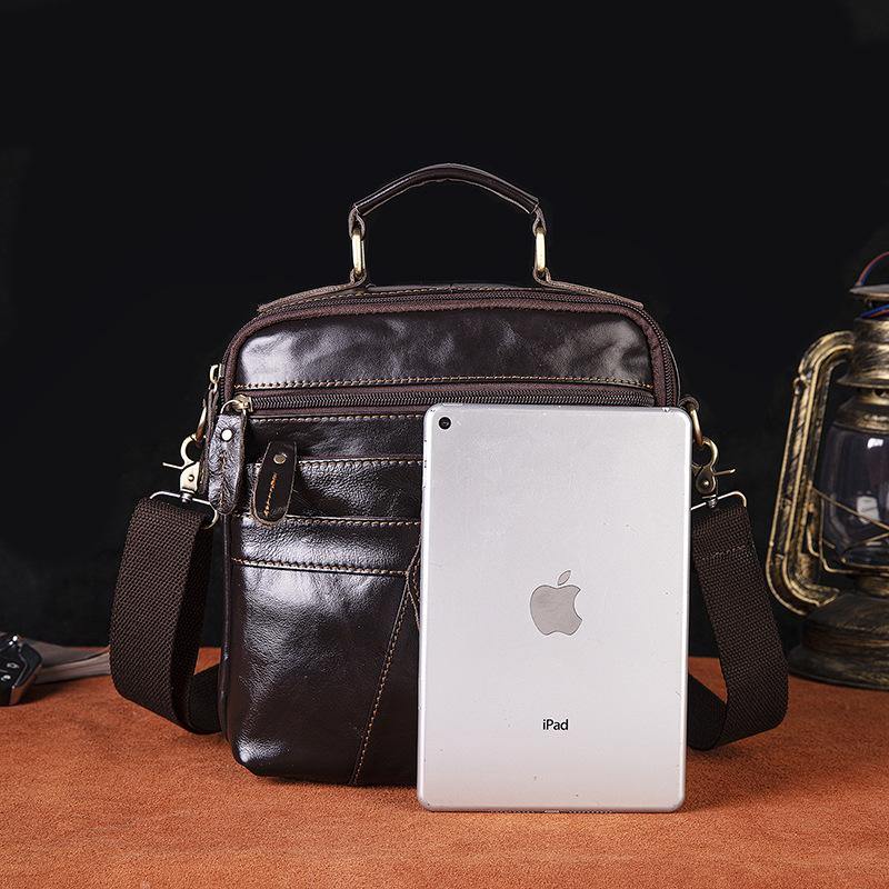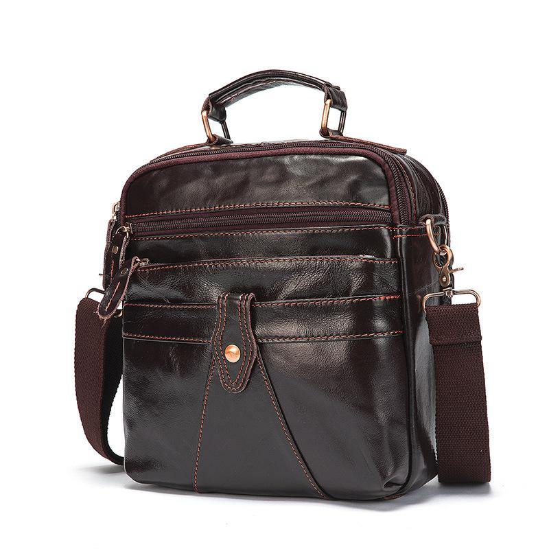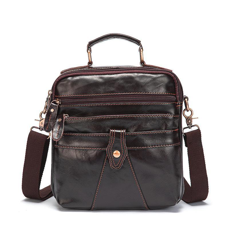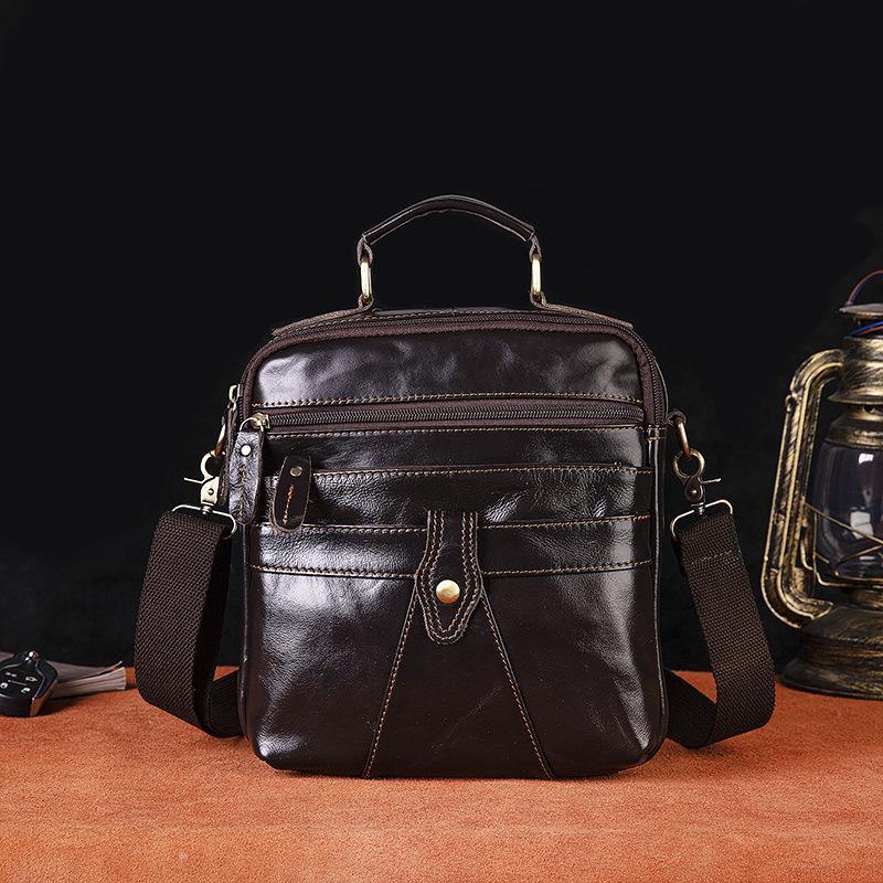 Design: Coffee LEATHER MEN'S Small Vertical Side Bag Messenger Bag Coffee Shoulder Bag FOR MEN