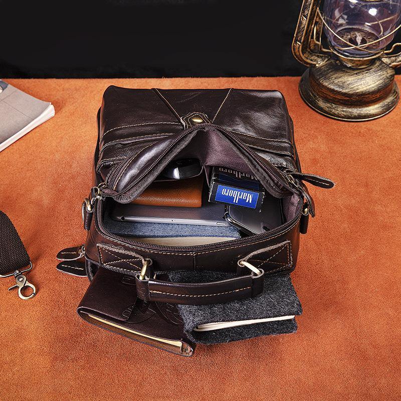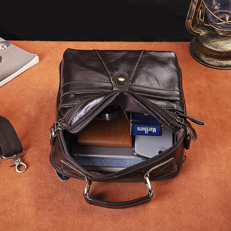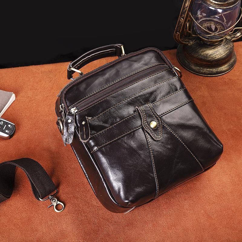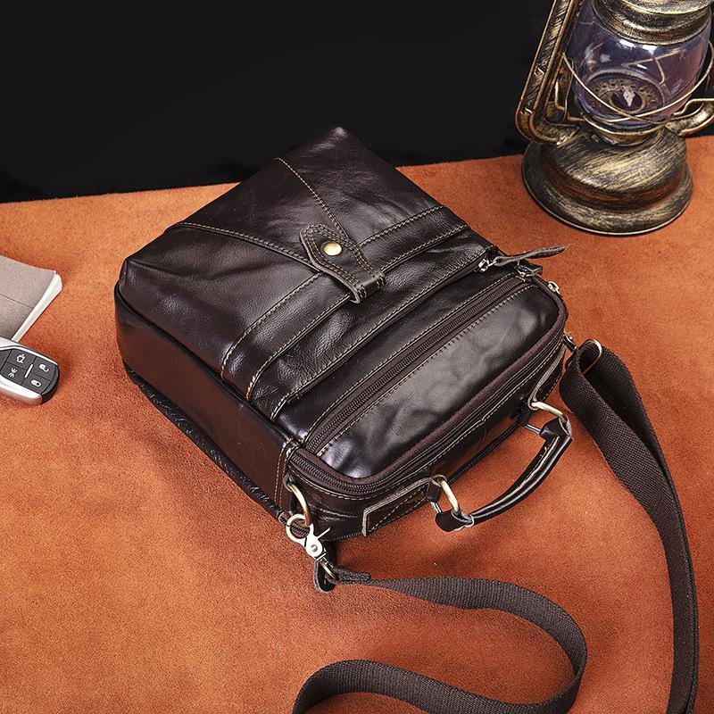 Design: Coffee LEATHER MEN'S Small Vertical Side Bag Messenger Bag Coffee Shoulder Bag FOR MENOverview: