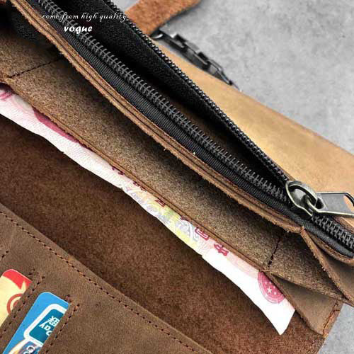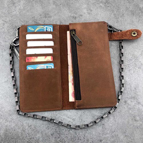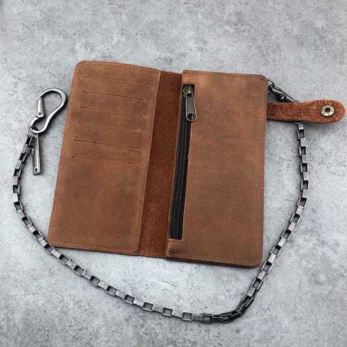Design: Badass Brown Leather Men's Long Biker Chain Wallet Black Long Wallet with Chain For Men