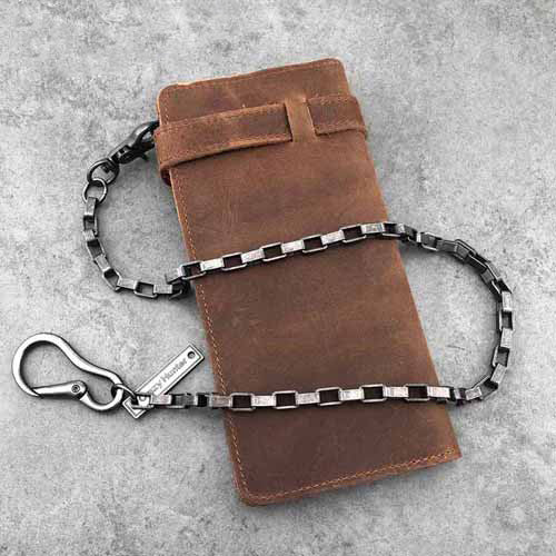 Style: Badass Brown Leather Men's Long Biker Chain Wallet Black Long Wallet with Chain For Men