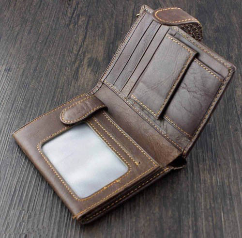 Design: Badass Brown Leather Men's Trifold Small Biker Wallet Chain Wallets Wallet with chain For Men