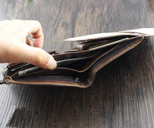 Style: Badass Brown Leather Men's Trifold Small Biker Wallet Chain Wallets Wallet with chain For Men