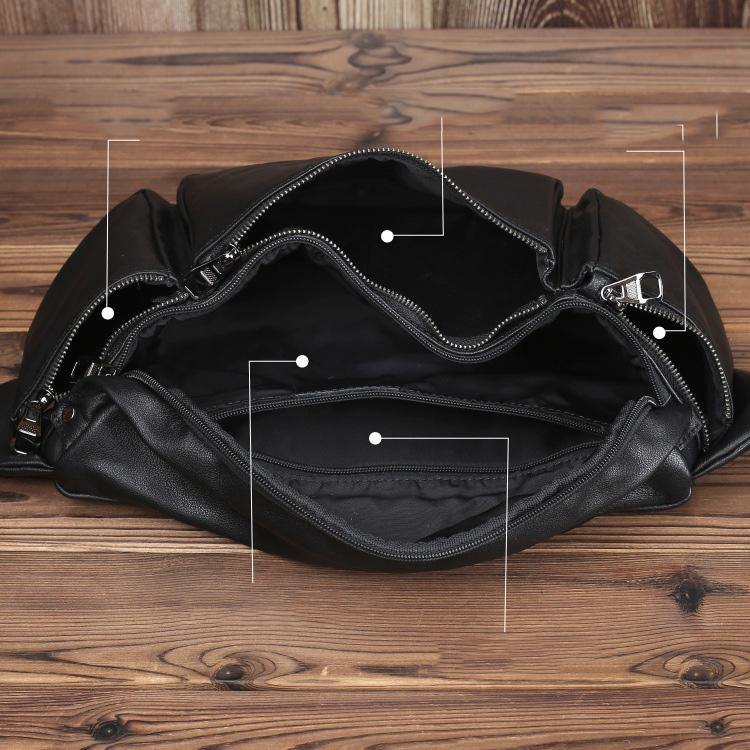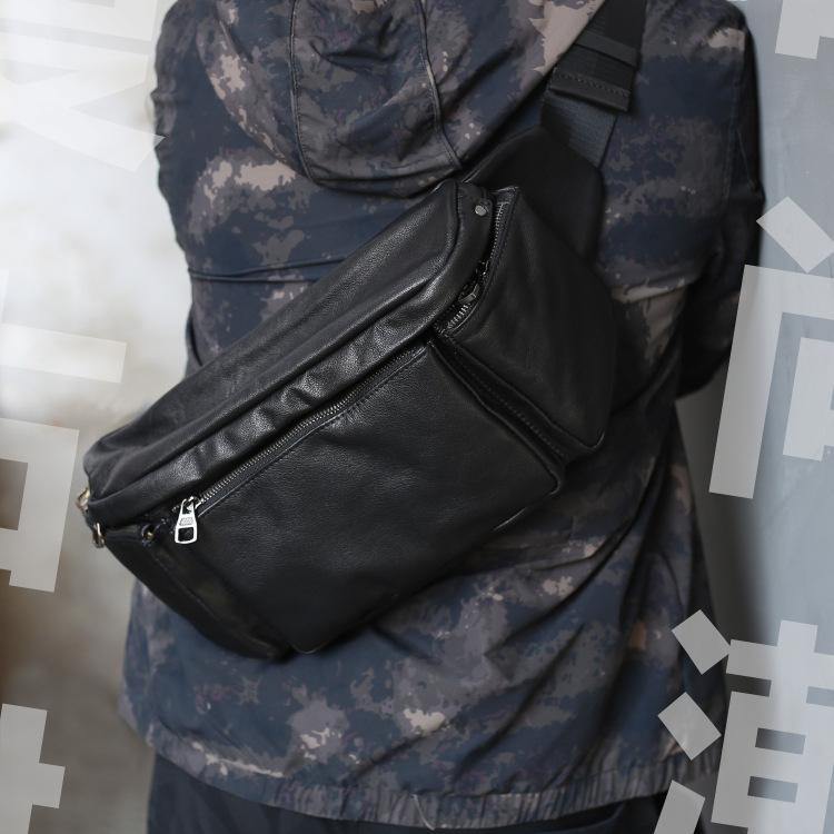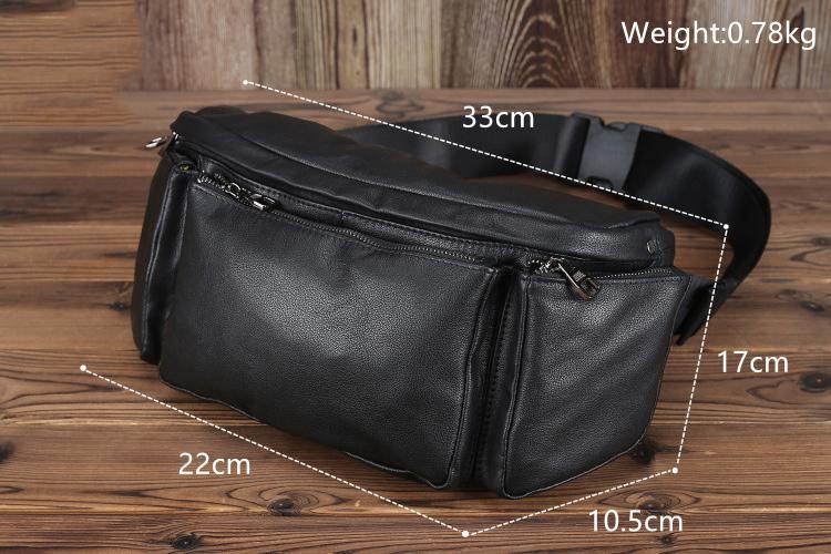 Design: Badass Leather Fanny Pack Men's Black Chest Bag Hip Bag Large Capacity Waist Bag For Men