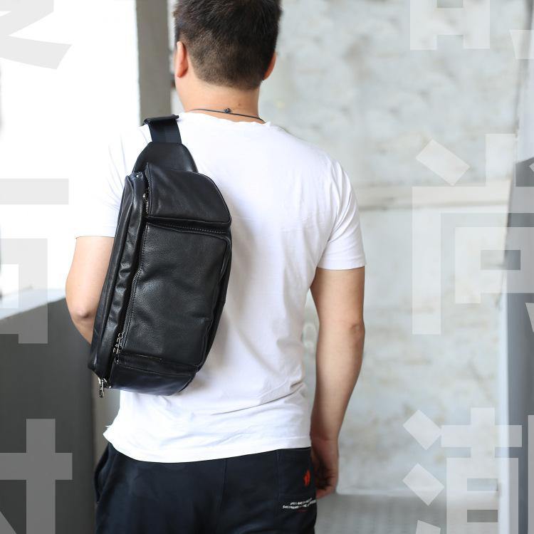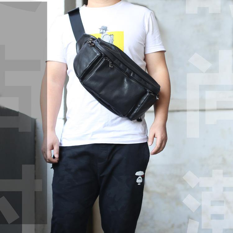 Style: Badass Leather Fanny Pack Men's Black Chest Bag Hip Bag Large Capacity Waist Bag For Men