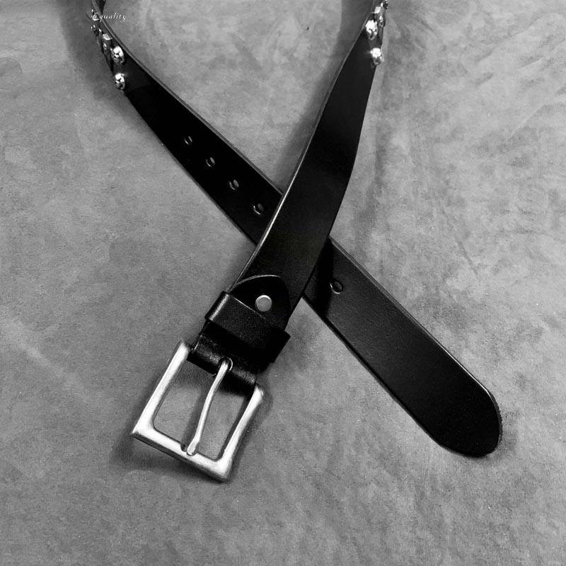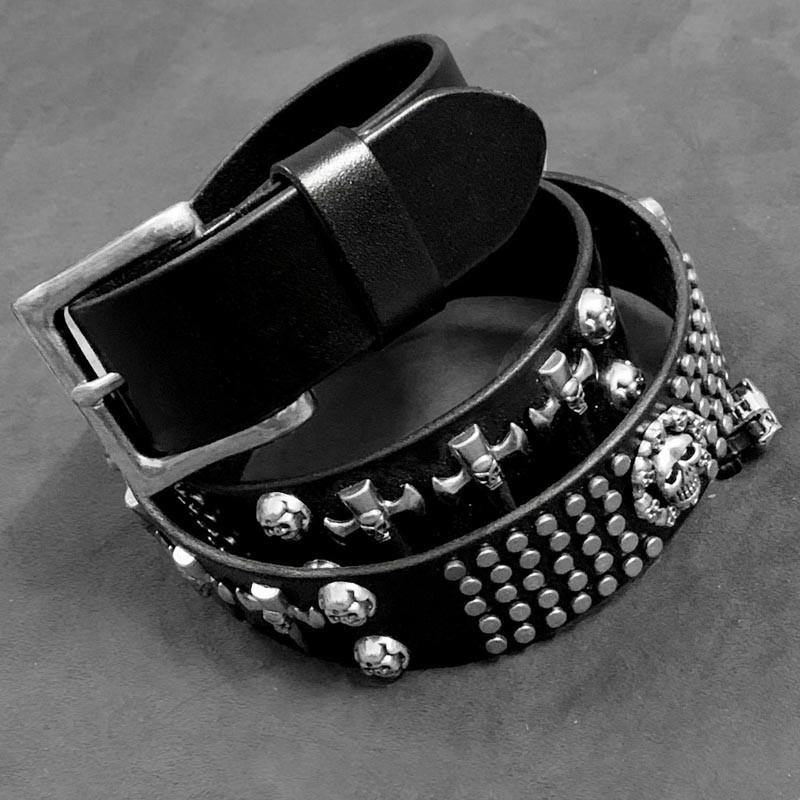Style: Badass Leather Metal Belt Punk Skull Motorcycle Belt Leather Round Belts For Men