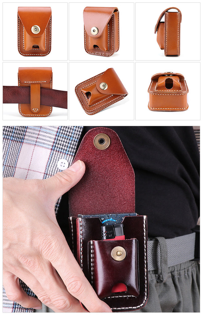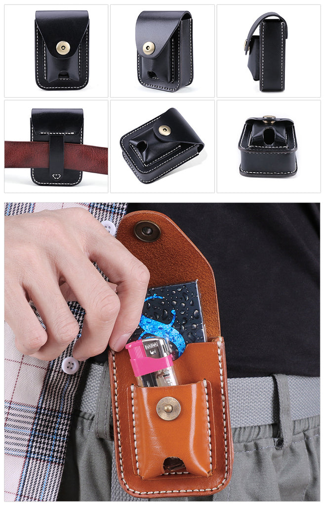Design: Leather Mens Cigarette Cases with Lighter Holder With Belt Loop Cigarette Holder For Men
