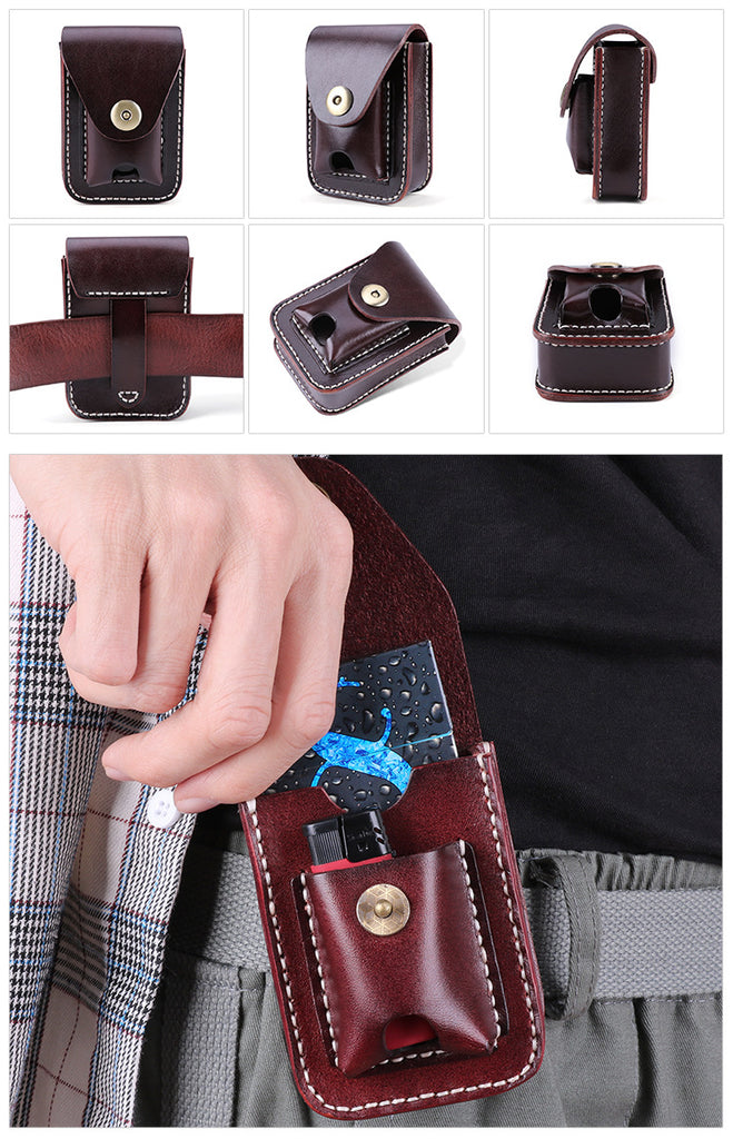 Style: Leather Mens Cigarette Cases with Lighter Holder With Belt Loop Cigarette Holder For Men