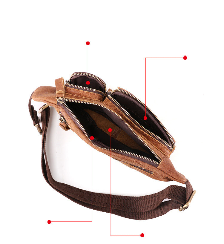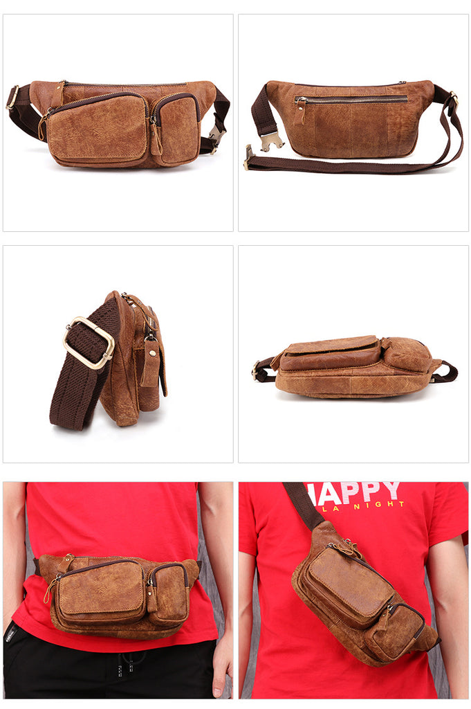 Design: Badass Matte Leather Backpack Men's Brown Sling Bag Chest Bag Multi-function One shoulder Backpack Waist Bag For Men