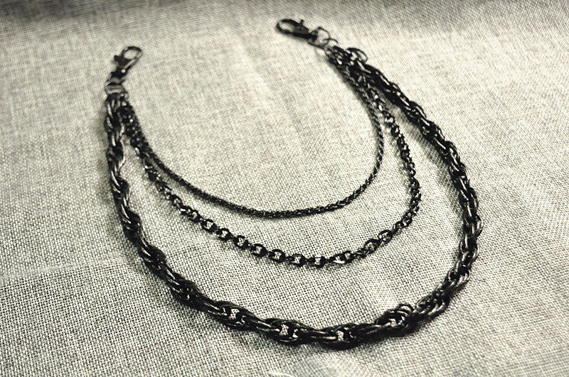 Style: Badass Men's Black Triple Long Wallet Chain Pants Chain Biker Wallet Chain For Men