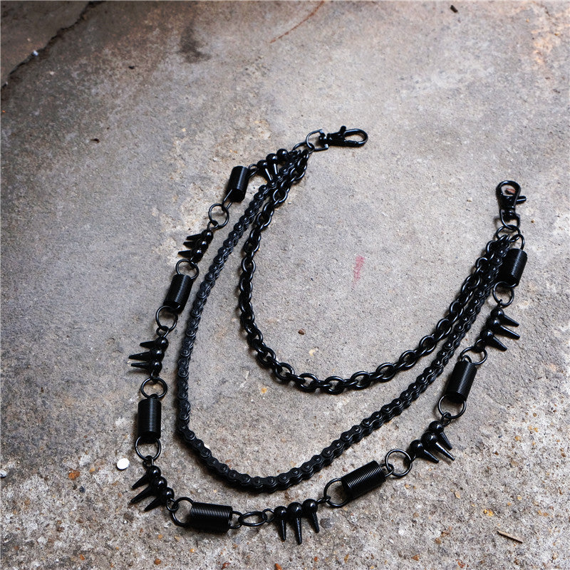 Style: Badass Men's Triple Black Long Wallet Chain Pants Chain Biker Wallet Chain For Men