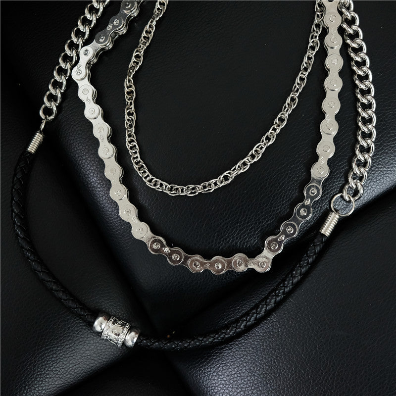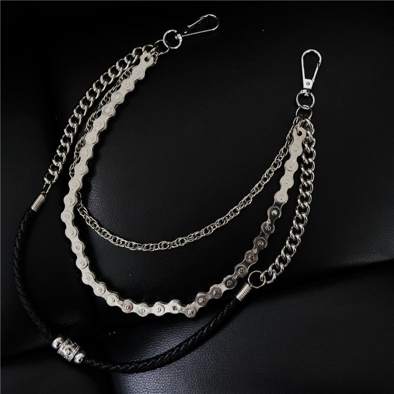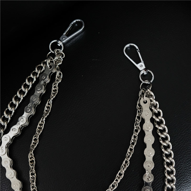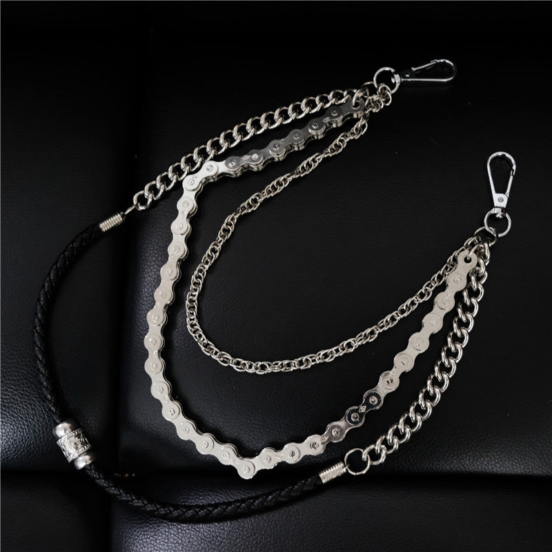 Design: Badass Mens Leather Triple Stainless steel Pants Chain Biker Wallet Chain For Men