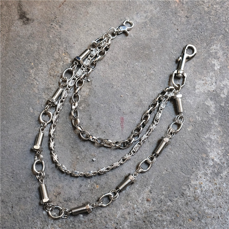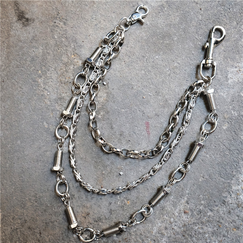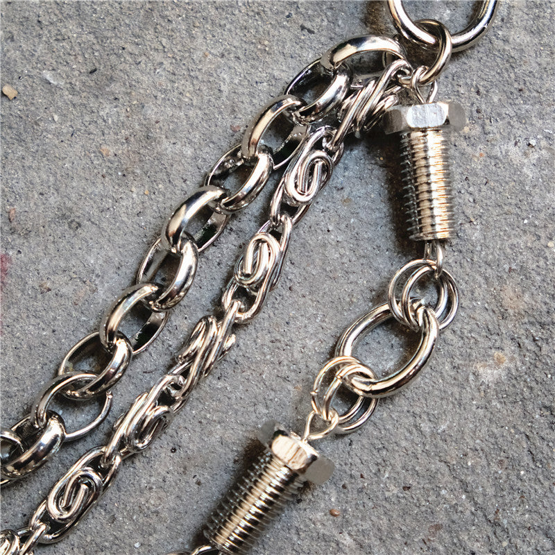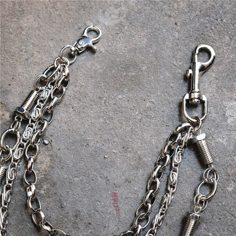 Design: Badass Men's Silver Triple screw bolt Pants Chain Wallet Chain For Men