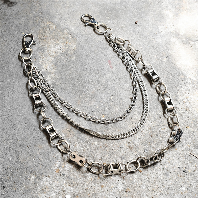 Design: Badass Men's Silver Triple Pants Chain Bike Chain Long Punk Wallet Chain For Men