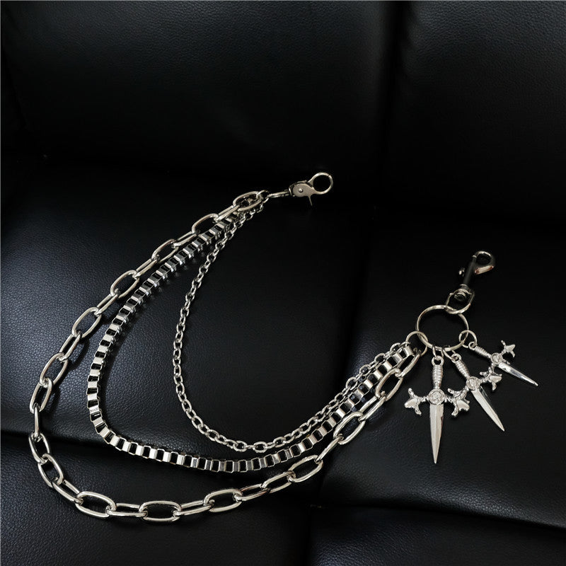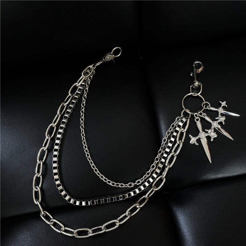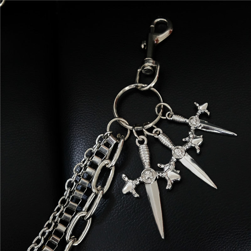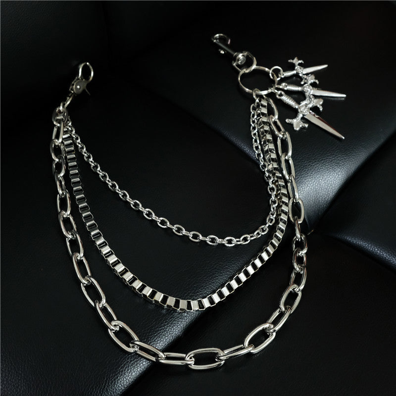 Style: Badass Silver Punk Sword Triple Biker Pants Chain Wallet Chain For Men