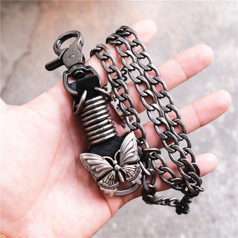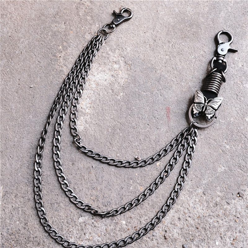 Style: Badass Mens Metal Three Layer Butterfly Key Chain Pants Chain Wallet Chain For Men