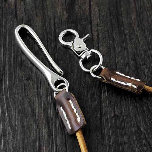 Design: Badass Tan Handmade Leather Long Wallet Chain Cool Punk Rock Biker Wallet Chain Trucker Wallet Key Chain for Men