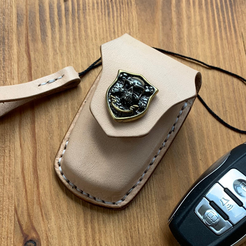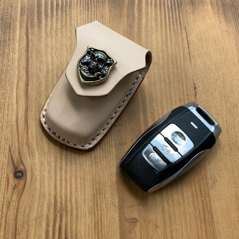Design: Beige Leather Haval Car Key Fob Cover Handmade Haval H6H2H7 Leather Case For Key Fob with Belt Clip