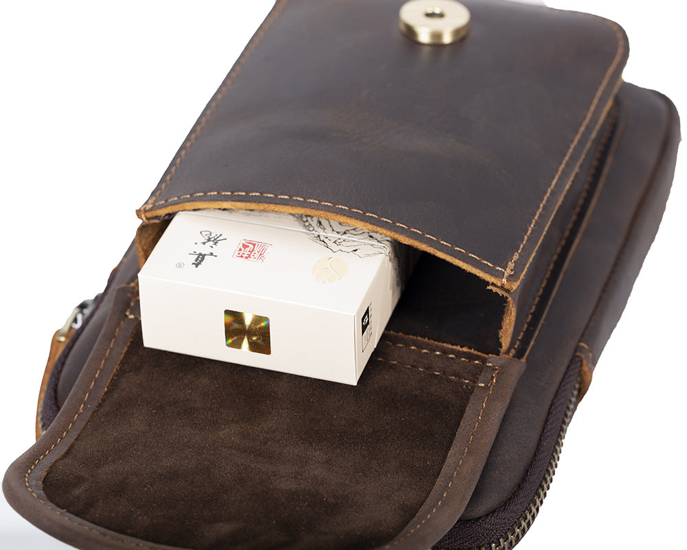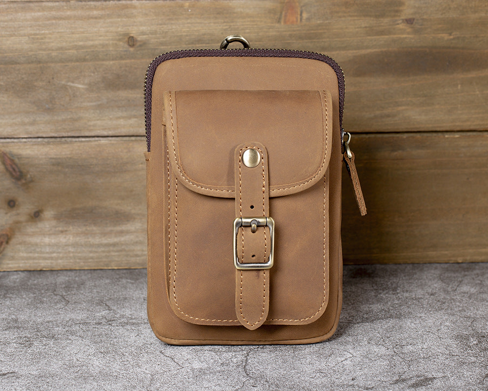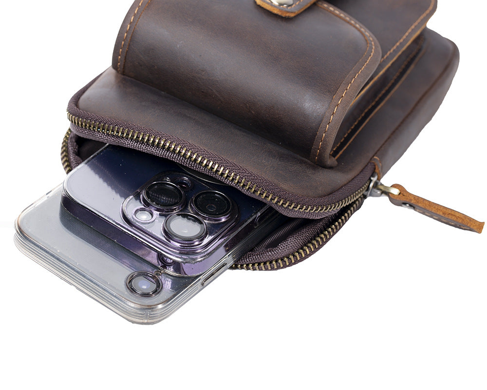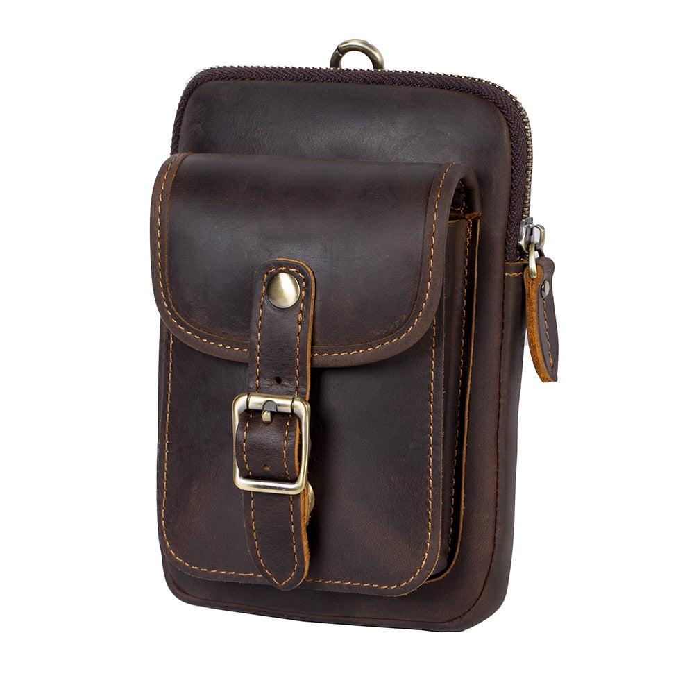 Discover the perfect fusion of rustic charm and modern functionality with our Belt Clip On Pouch, an expertly crafted leather accessory designed for the on-the-go lifestyle. This compact Mens Belt Pouch Leathermeasures 18.5cm x 12.5cm x 4cm, meticulously fashioned from full-grain crazy horse leather that develops a unique patina over time. Featuring a practical magnetic-flap front pocket and a secure zippered main compartment, this versatile Leather Phone Belt Pouchkeeps your essentials organized and accessible, offering hands-free convenience without sacrificing style.