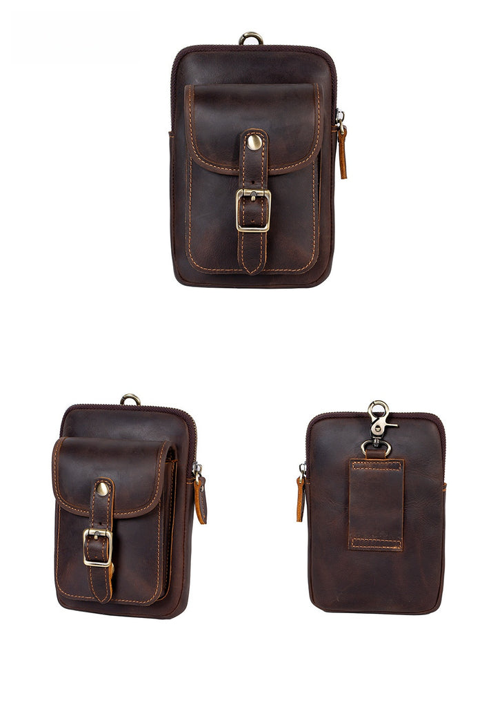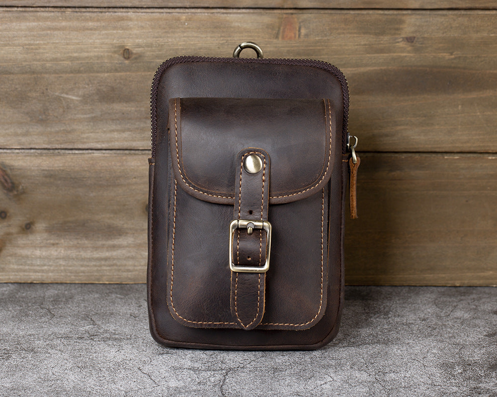 Belt Clip On Pouch | Vintage Crazy Horse Leather Phone Carrier